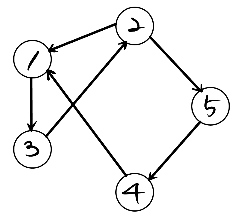โก๏ธ E(G) = {(1, 2), (3, 1), (3, 2), (4, 1), (5, 2), (5, 4)}