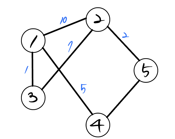 โก๏ธ ๊ฐ์ ๋ง๋ค ๊ฐ์ค์น๊ฐ ๋ถ์ฌ๋์ด์๋ ๊ทธ๋ํ์ด๋ค.