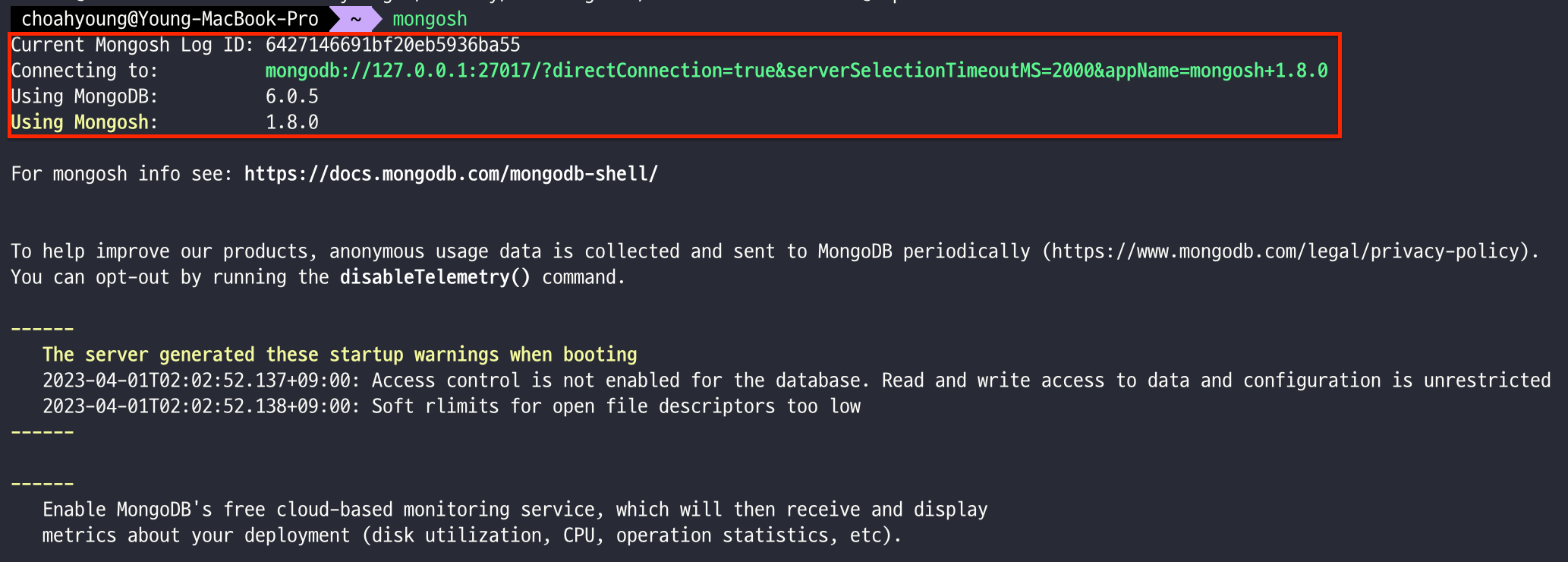 ๋ น์ด์ด๋ค. ๋ง์ฝ MongoDB ๋ฅผ ์ฒ์ ์ค์นํ๋ ์ํฉ์ด๋ผ๋ฉด ํด๋น ๋ช