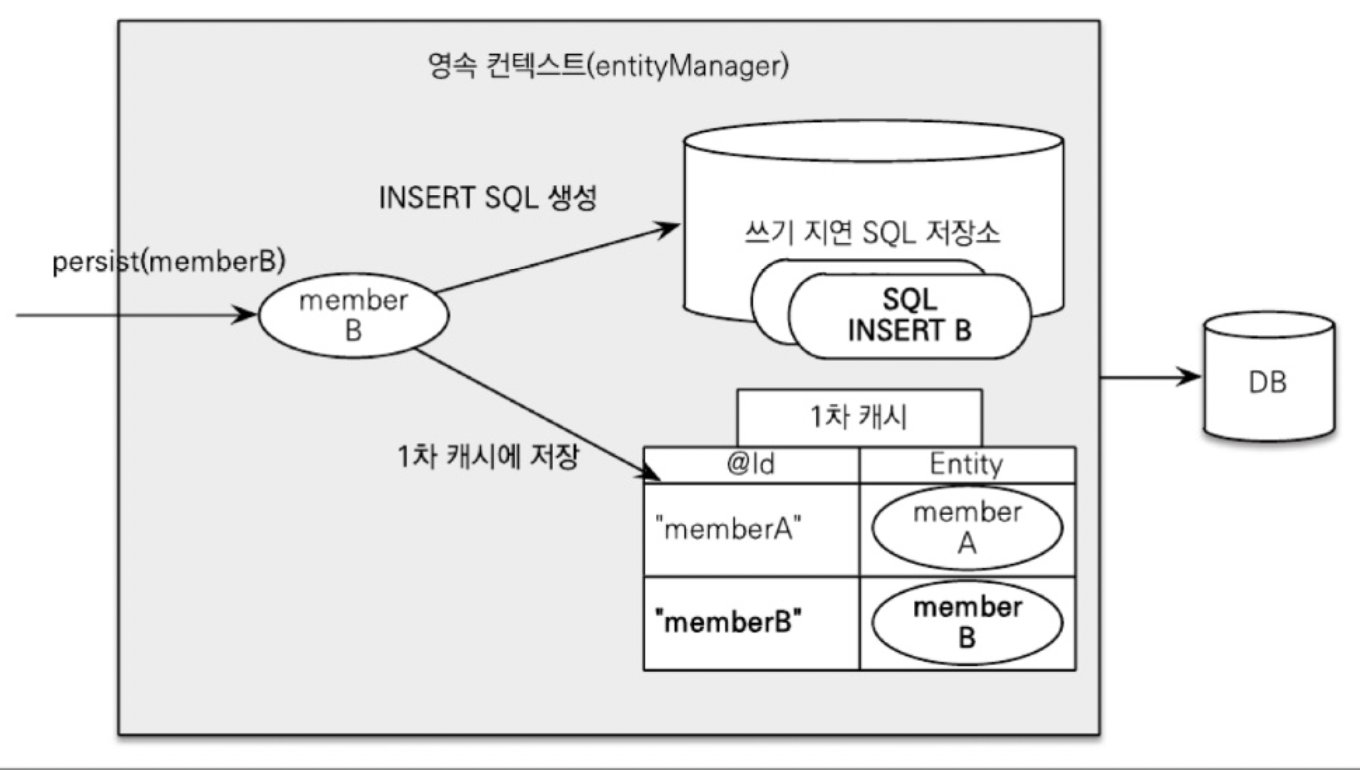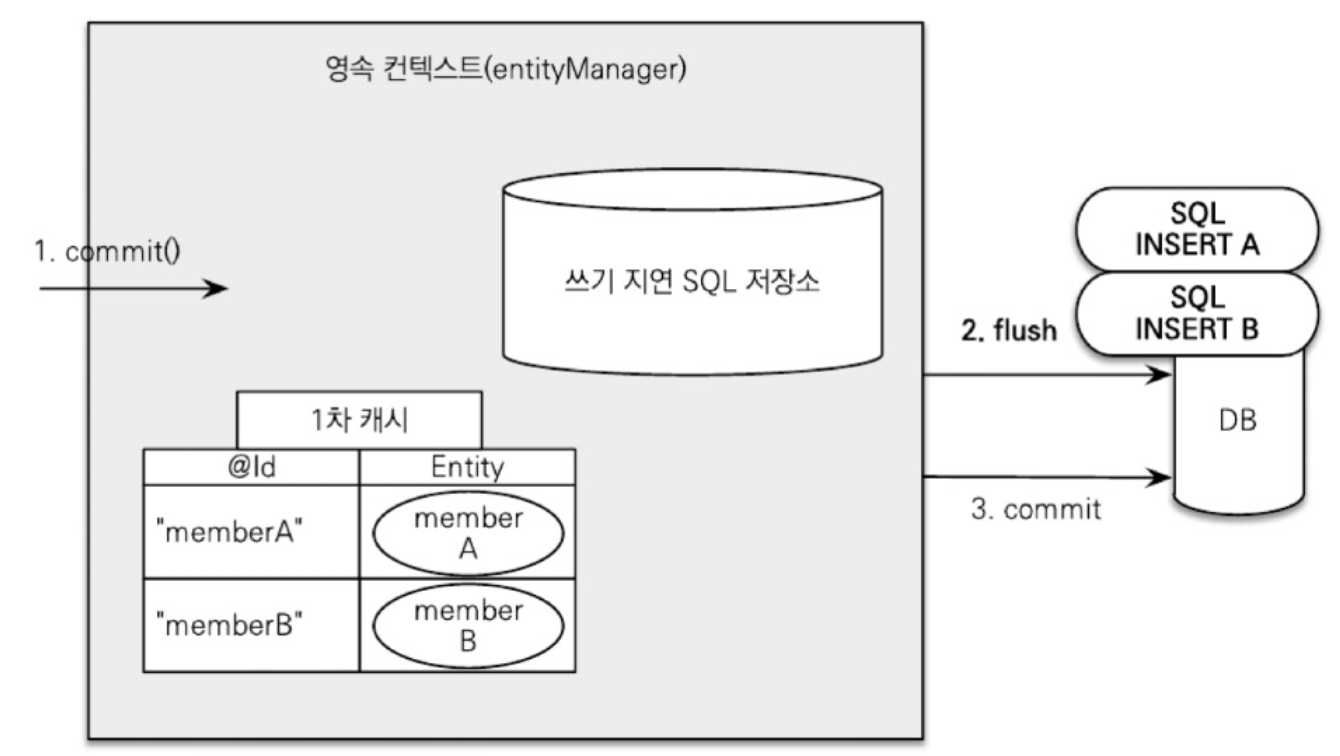 β‘οΈ μ°κΈ° μ§μ° : μν°ν° λ§€λμ λ νΈλμμ μ 컀λ°νκΈ° μ§μ κΉμ§ DB μ μν°ν°λ₯Ό μ μ₯νμ§ μλλ€. λ΄λΆ 쿼리 μ μ₯μμ λͺ¨μλ 쿼리λ₯Ό μ»€λ° μ DB λ‘ flush() λ₯Ό ν΅ν΄ 보λΈλ€.