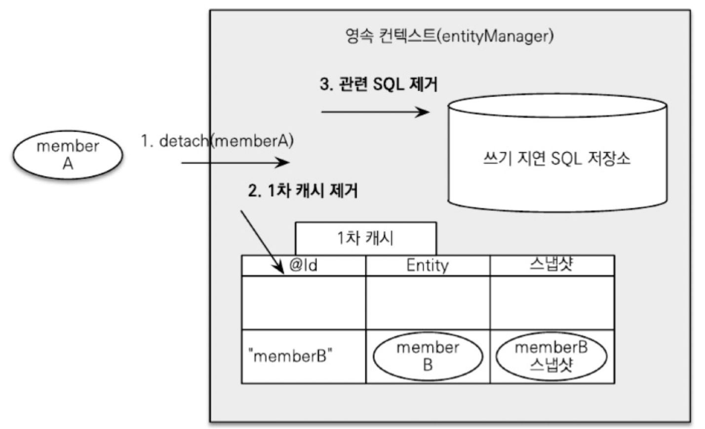 β‘οΈ em.remove() λ₯Ό νΈμΆνλ μκ° μμμ± μ»¨ν μ€νΈμμλ μ κ±°λλ€.