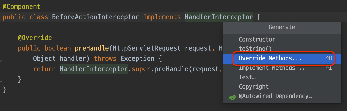 public class BeforeActionInterceptor implements HandlerInterceptor {