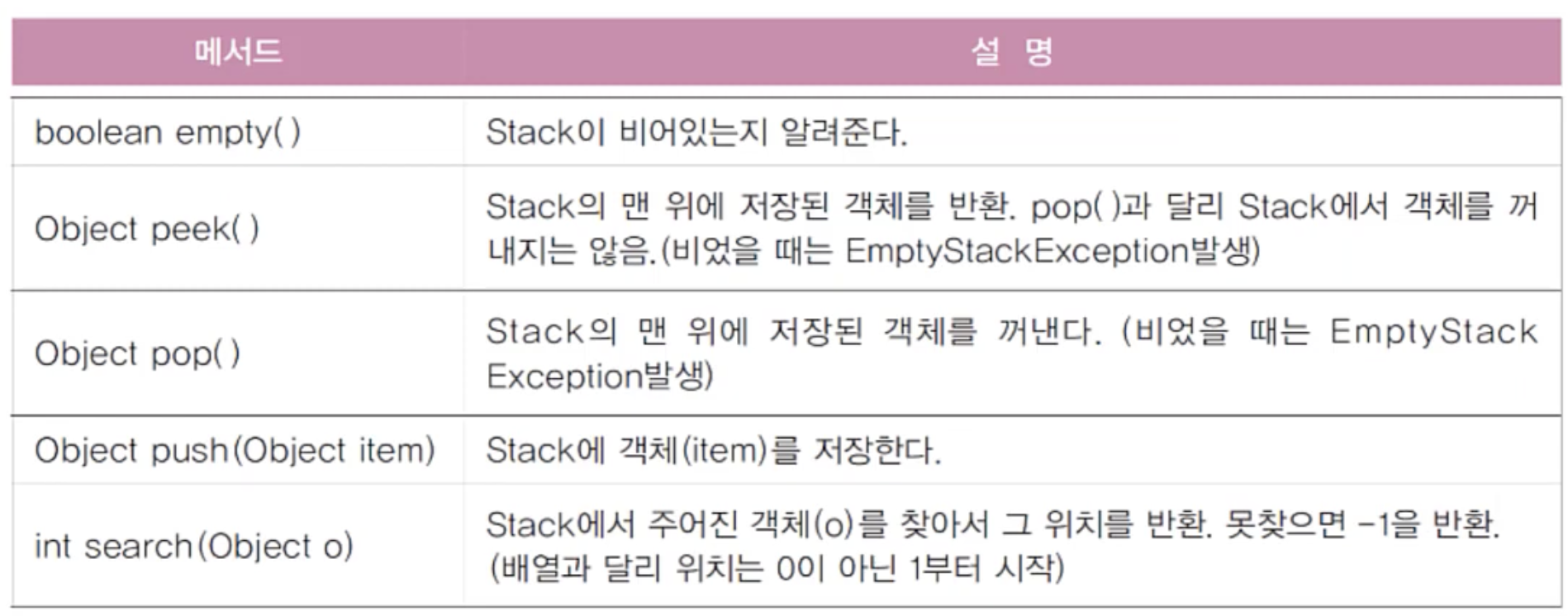 โก๏ธ search ๋ฉ์๋์ ๊ฒฝ์ฐ return ํ์ ์ด int ๋ก Stack ์์์ ์์น๋ฅผ ์๋ฏธํ๋๋ฐ ๋ฐฐ์ด์์์ index ๊ฐ 0 ์์ ์์ํ๋ ๊ฒ๊ณผ ๋ฌ๋ฆฌ Stack ์ 1๋ถํฐ ์์ํจ์ ์ ์ํด์ผํ๋ค.