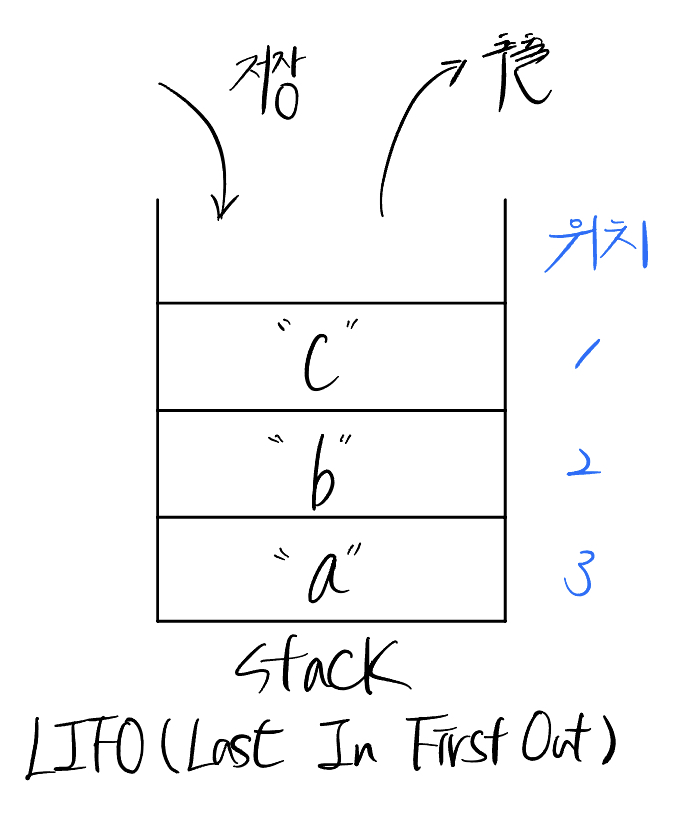 โก๏ธ ๋ฐ๋ฅ์ด ๋งํ์๋ ์์๋ฅผ ์๊ฐํ๋ฉด ๊ฐ๋จํ๋ค. ๋จผ์ ๋ฃ์ ๋ฌผ๊ฑด์ด ๋งจ ์๋์ ์๊ณ ์ต๊ทผ์ ๋ฃ์ ๋ฌผ๊ฑด์ผ ์๋ก ์์ ์๋ค. ๋ฐ๋ผ์ ๊บผ๋ผ ๋๋ ๋ง์ง๋ง์ ๋ฃ์ ๋ฌผ๊ฑด์ ๋จผ์ ๊บผ๋ด๊ฒ ๋๋ค. ์ด๋ฌํ ๊ตฌ์กฐ๋ฅผ LIFO (Last In First Out) ๊ตฌ์กฐ๋ผ๊ณ ํ๋ค.