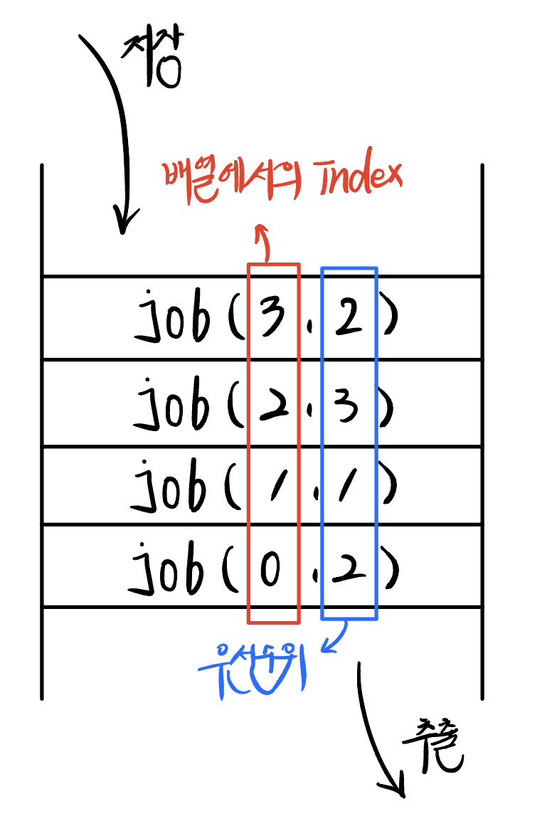 β’ printer() ν¨μλ‘ λΆν° λ°ν λ job μ index κ°μ΄ location κ³Ό κ°λ€λ©΄ answer κ°μ 리ν΄