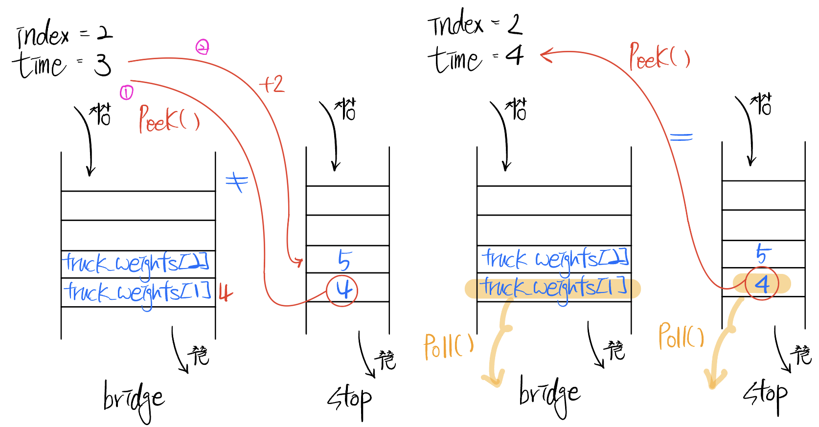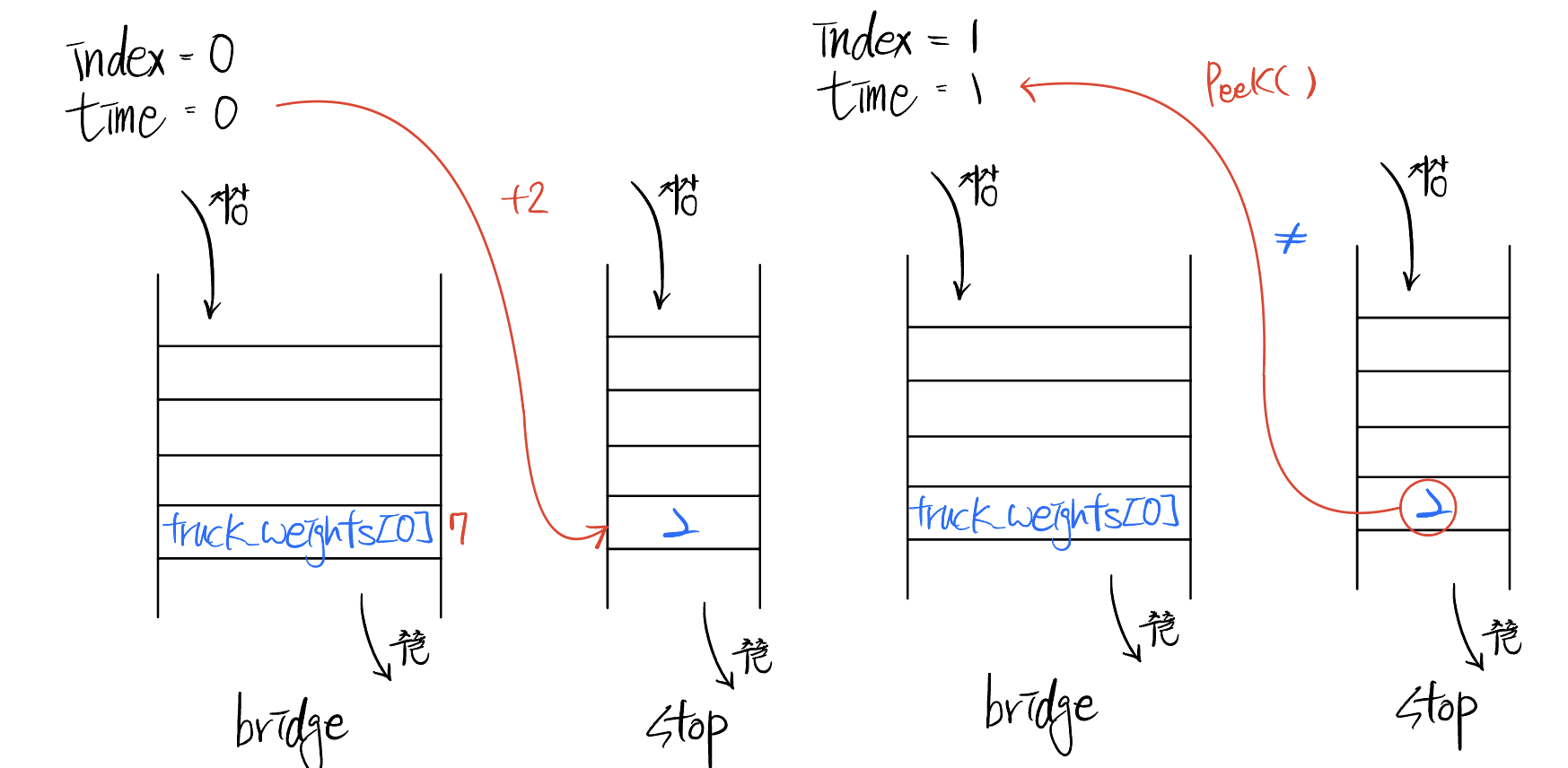 ๐ ํ๋ก๊ทธ๋๋จธ์ค / ์คํ&ํ / Level2 / ๋ค๋ฆฌ๋ฅผ ์ง๋๋ ํธ๋ญ