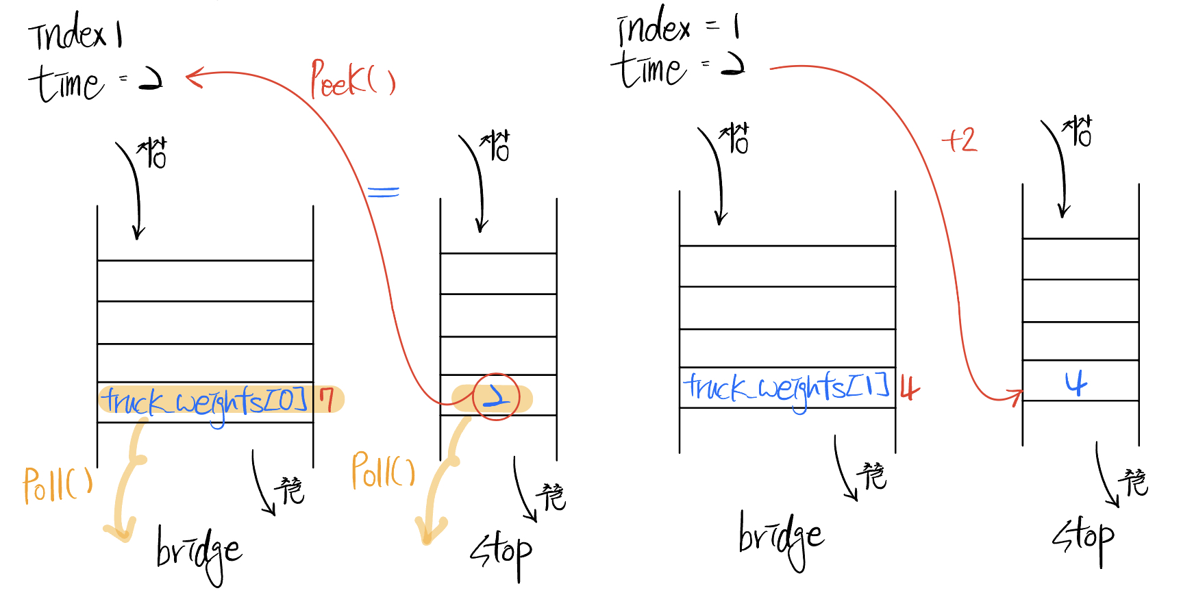 Queue<Integer> bridge = new LinkedList<>(); // ๋ค๋ฆฌ