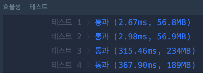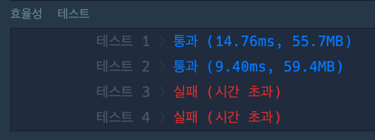 β‘οΈ μΌλ° μ½λλ€μ λͺ¨λ ν΅κ³Όνμ§λ§ ν¨μ¨μ± ν μ€νΈμμ 2κ°λ₯Ό ν΅κ³Όνμ§ λͺ»νλ€.